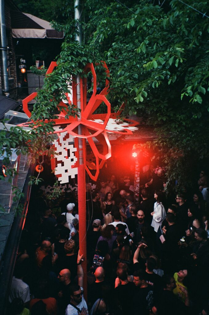 Unlike the pre-2022 festivals, which usually had the epic opening at the Dvir stage, these daytime-only (because of curfew) festivals allow you to pick your own adventure from the start. I decided to choose the newest Closer resident, Shults.Sashaa and his kicking-out-the-door-with-the-leg opening set at Otel’ stage. Moderately small and dark place, filled with sweaty people just an hour after the start – sounds just right.