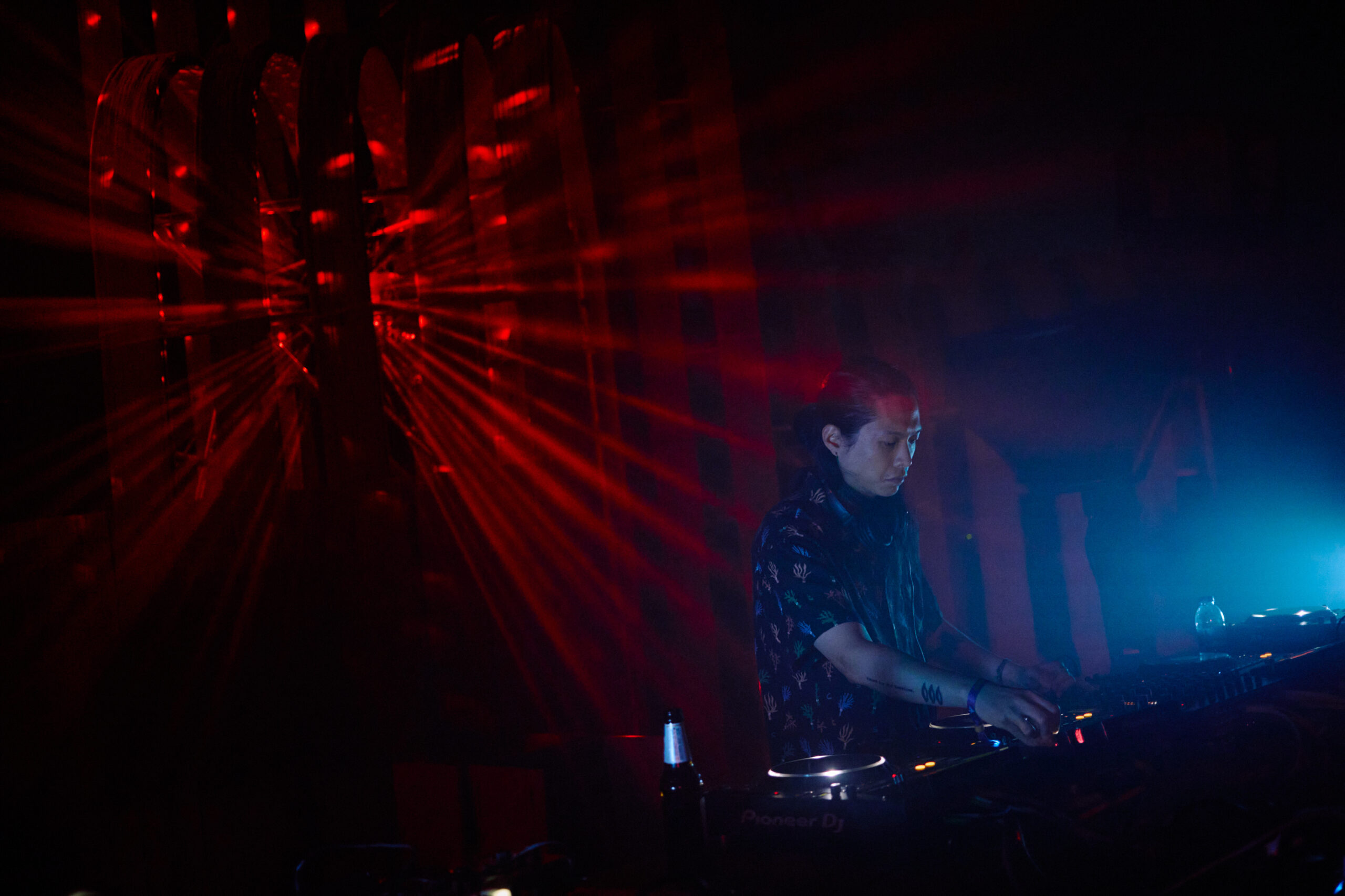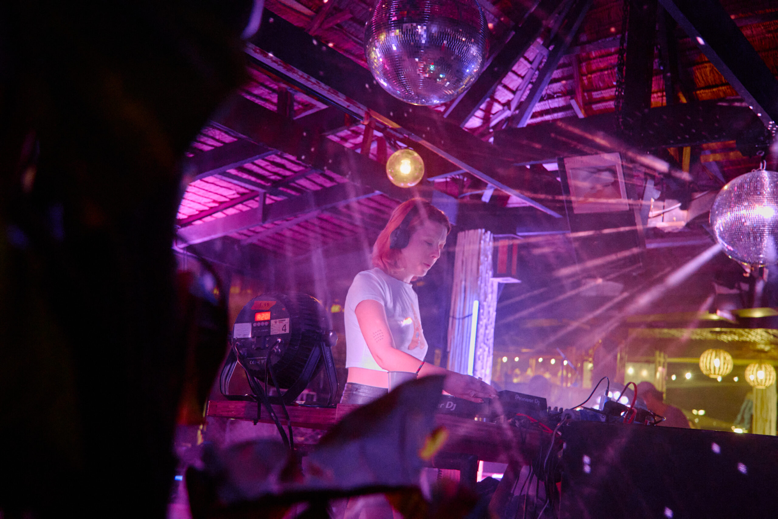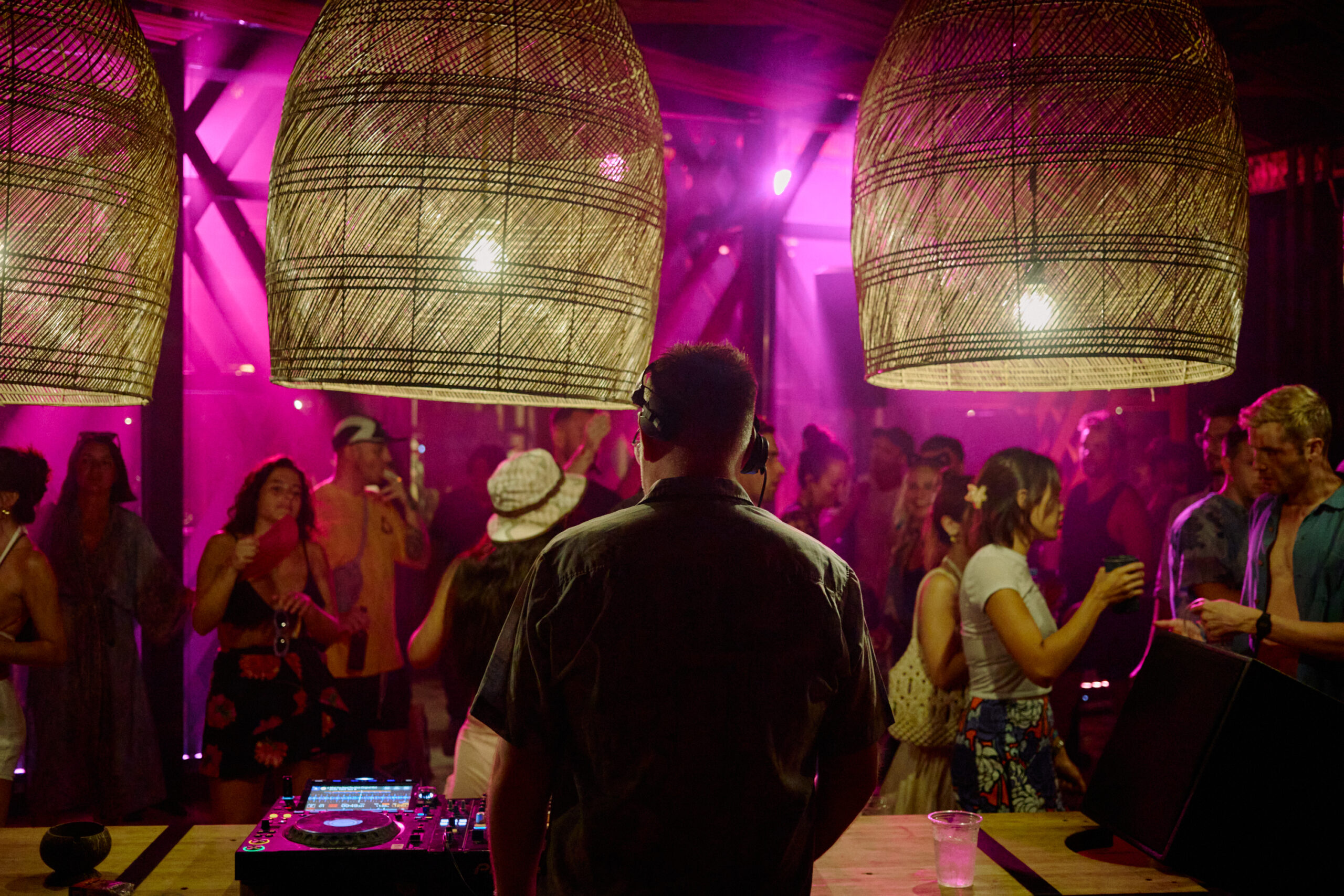 Next up was Bangkok-based UK artist Seelie, and from the outset, he had the crowd lapping up his high-energy combination of house and disco flecked heaters. Having played a pivotal part in the development of the local scene, he has brought all his experience from the UK scene to Thailand. Expertly raising the temperature, he soon handed off to rising star Thai artist Elaheh, who was soon thrust into the boiler room DJ booth. With the wicker lamp shades perfectly framing the decks, she quickly stamped her mark on the night with a robust, techy footprint typified by Sound Of the Suburbs’ deep bass tones of “Beautifly”. With another top set in the bag and the night already at fever pitch, More Rice Records co-founder Sarayu steps up to the decks.