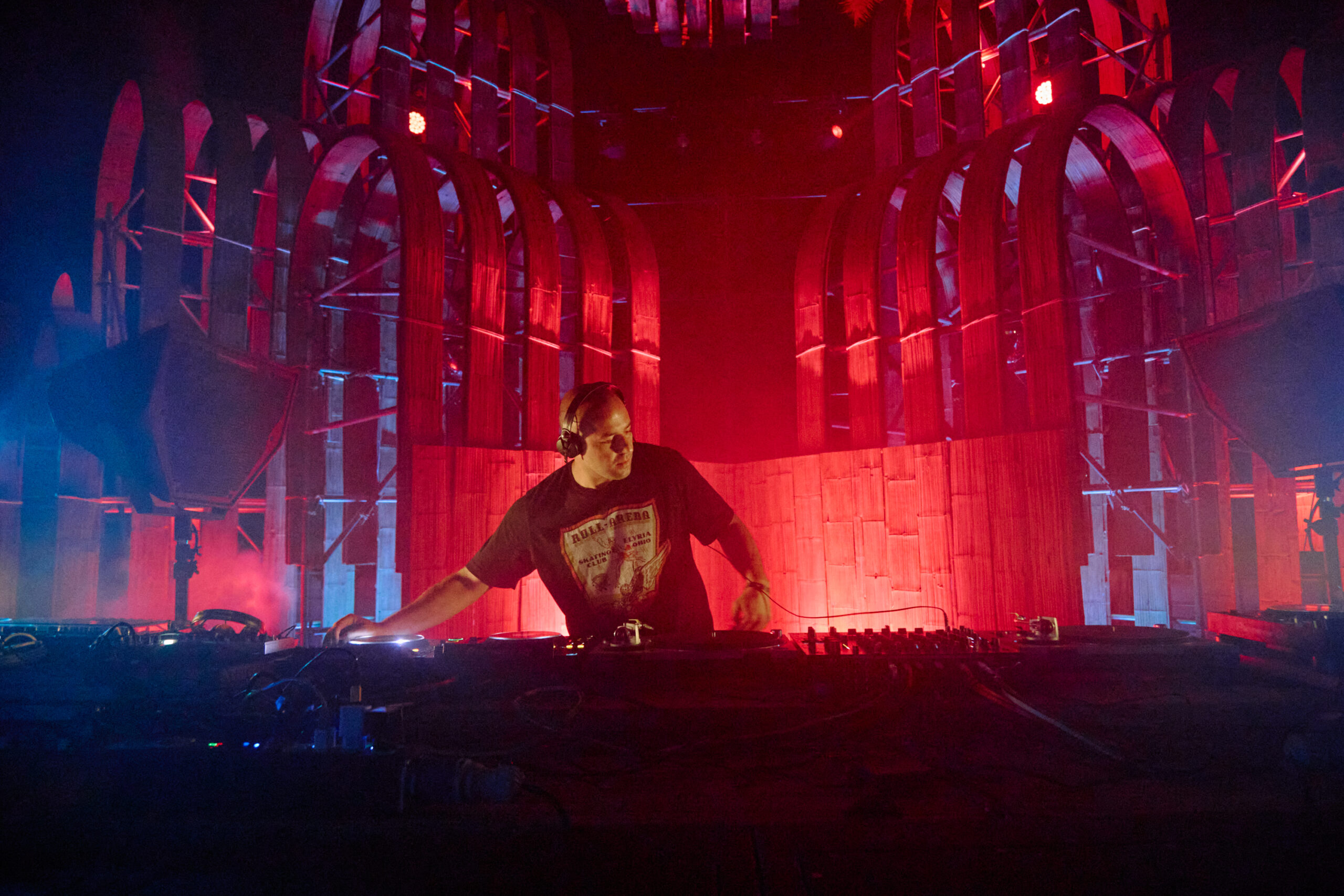 With this particular New Year’s Eve party being somewhat of a marathon, and when we arrived the final party location of Little Moon resort, and after the short walk down to the party, the most immediately striking image was the backdrop to the evening. Directly behind the decks was a massive curved wooden structure that defies logic in its design. As well as the huge palms that lined the area, this structure would act as a blank canvas for the lighting and visual engineers that has done such a great job throughout the festival. Adis Is Ok was already deep into his set. The party vibes were nothing short of infectious, and with tracks like Krystal Klear’s “Neutron Dance” being dropped not long before midnight, the atmosphere was already electric. The honour of ushering in the new year was certainly not lost on Adis as his set positively burst with old school breaky energy until the very last beat.
