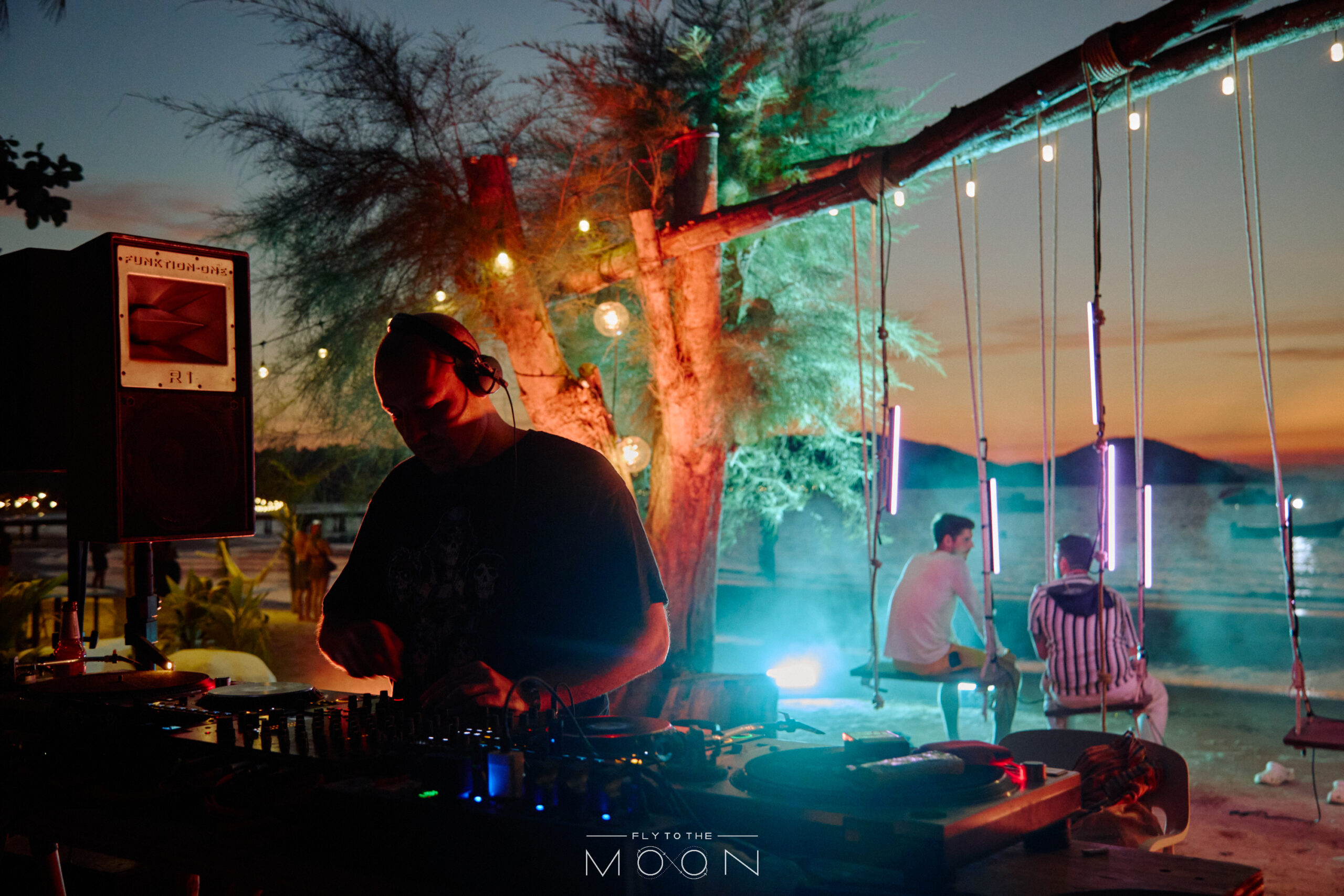 Having been home to Fly To The Moon on Koh Mak since 2013, there is no more important event than the first edition. Panda tells the story of the first fateful event, “It was just a group of close friends—about ten people. I DJ’d alone the entire night until sunrise, about 15 hours straight. We set up at the old Little Moon Resort, which had its own private beach. The setup was simple: we used Pak’s own speakers, set up a few lights, some basic stage decoration, and that was it.” He goes on to give an insight into just how special the island really is, “Magic happened the moment the sun rose over the ocean on the first morning of the year. That view. It left a long-lasting impression on everyone there. And I think that’s what enticed people to come back for more.”