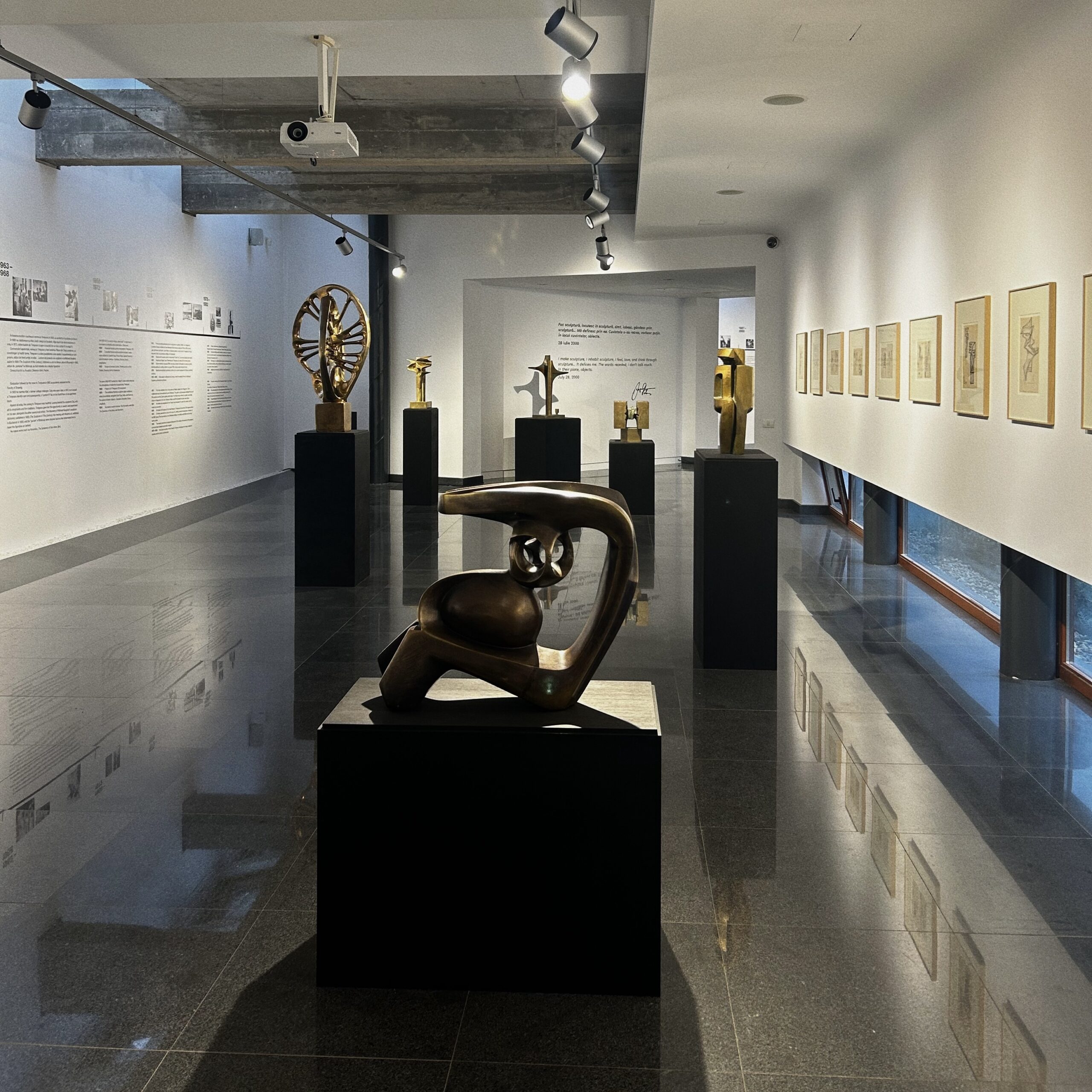 The exhibition consisted of 4 elements: the first part was a timeline explaining internationally renowned sculptor Peter Jecza’s (b. 1939 – d. 2009) evolution from a classical school of sculpture to an essentialization of form, the second part included a selection of 15 works that were the most appreciated and exhibited works of his career, a career that sums up 1200 unique sculptures, and the third element contained a series of drawings, including a bit of the artist’s “interior kitchen”, from the unseen area of the workshop – concept sketches showing the way a structure comes to life from an idea that starts as a drawing.