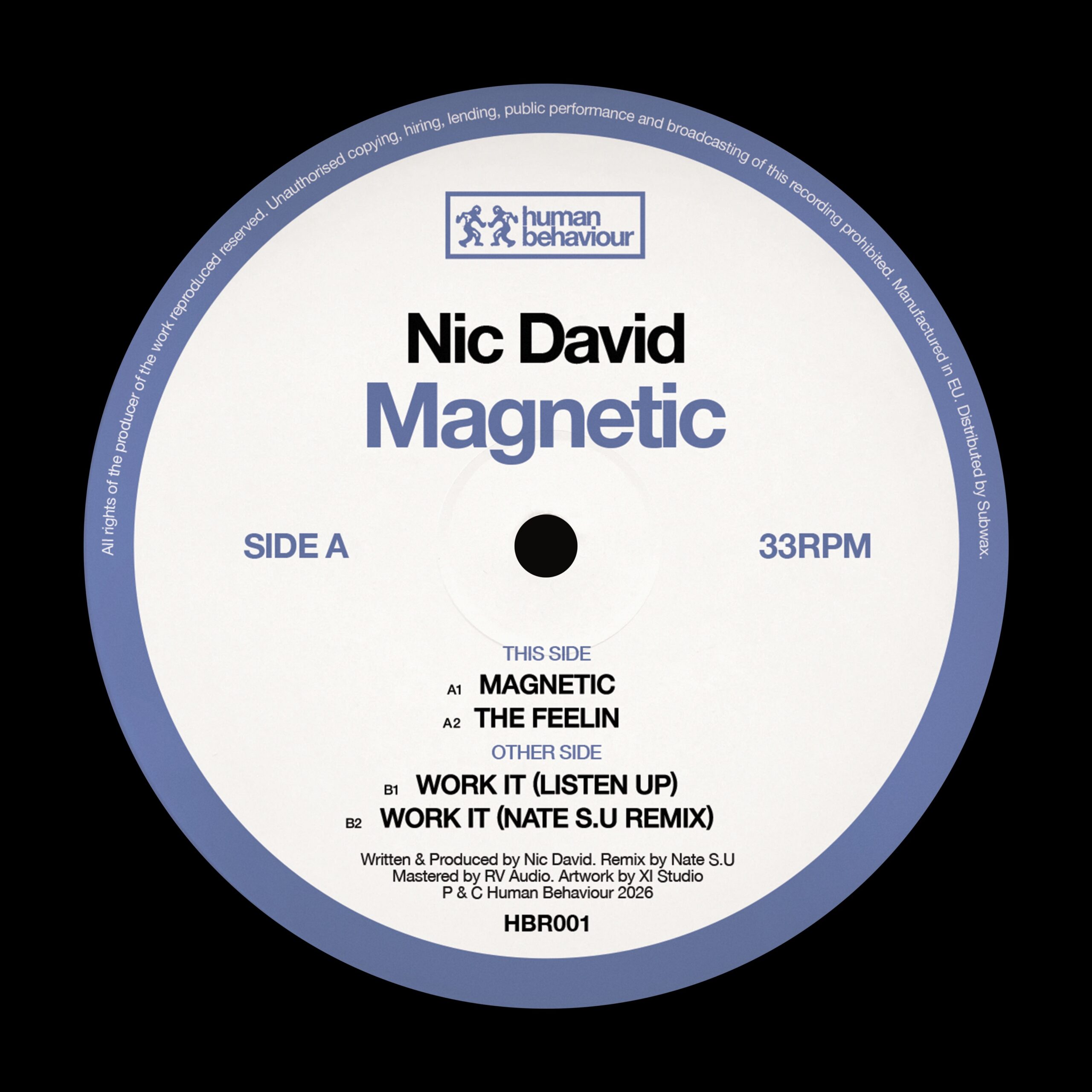 Over on side B there is a pair of versions of “Work It”. Firstly, Nic presents the original version with gated synths and heavy hitting beats. Treading a more electro route, the Human Behaviour boss combines a bounding bassline with his trademark energy shot. Opting for a more peak time path, Nate S.U somehow injects even more energy into “Work It” by way of a more bass guitar motif that edges down a progressive route.