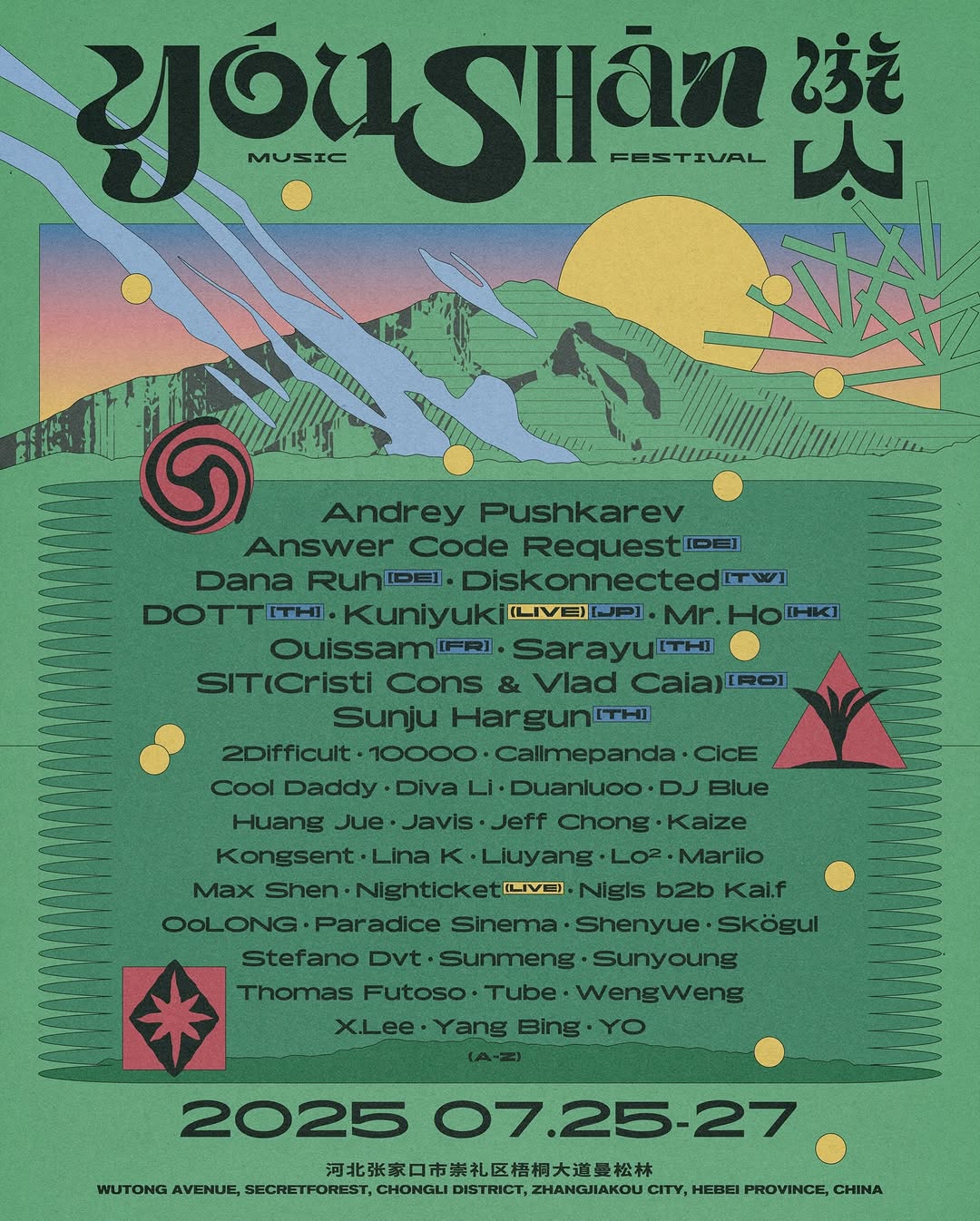 Selected in tandem with the above array is a serious curation of some of China’s most exciting sonic artists, selectors and party starters. Hailing from Nanjing, vinyl addict and Disc Chef founder, 2Difficult shows his sounds as he finds the balance between the beauty of acoustic instruments and the power of polymorphic 4/4 structures. Beijing-based electronic duo Nighticket perform live as they combine elements from progressive house, synth pop and more. Genki music festival organiser, SWING CAT label owner and Shanghai’s HEIM club co-founder Jeff Chong is also welcomed to the fold, selecting deep and jazzy cuts across genres. Setting the Beijing rave community alight, saferoom resident DJ Skögul selects hi-energy goods across genres and influences she keeps it bouncing. With too many artists to list them all, we implore you to check out the rest before you head, as you don’t want to sleep on any.