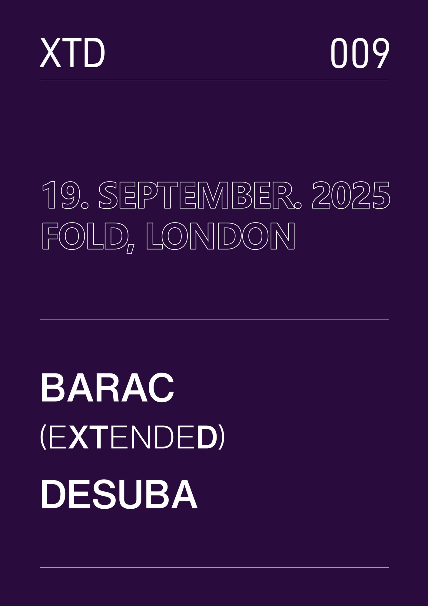 And now, the big news: on Friday, September 19th, Barac will make his debut at London’s iconic FOLD venue with a special extended set, running from 23:00 until 06:00. Joining him on the lineup is Desuba, a rising duo whose growing presence across UK and international events reflects their deep dedication to music.